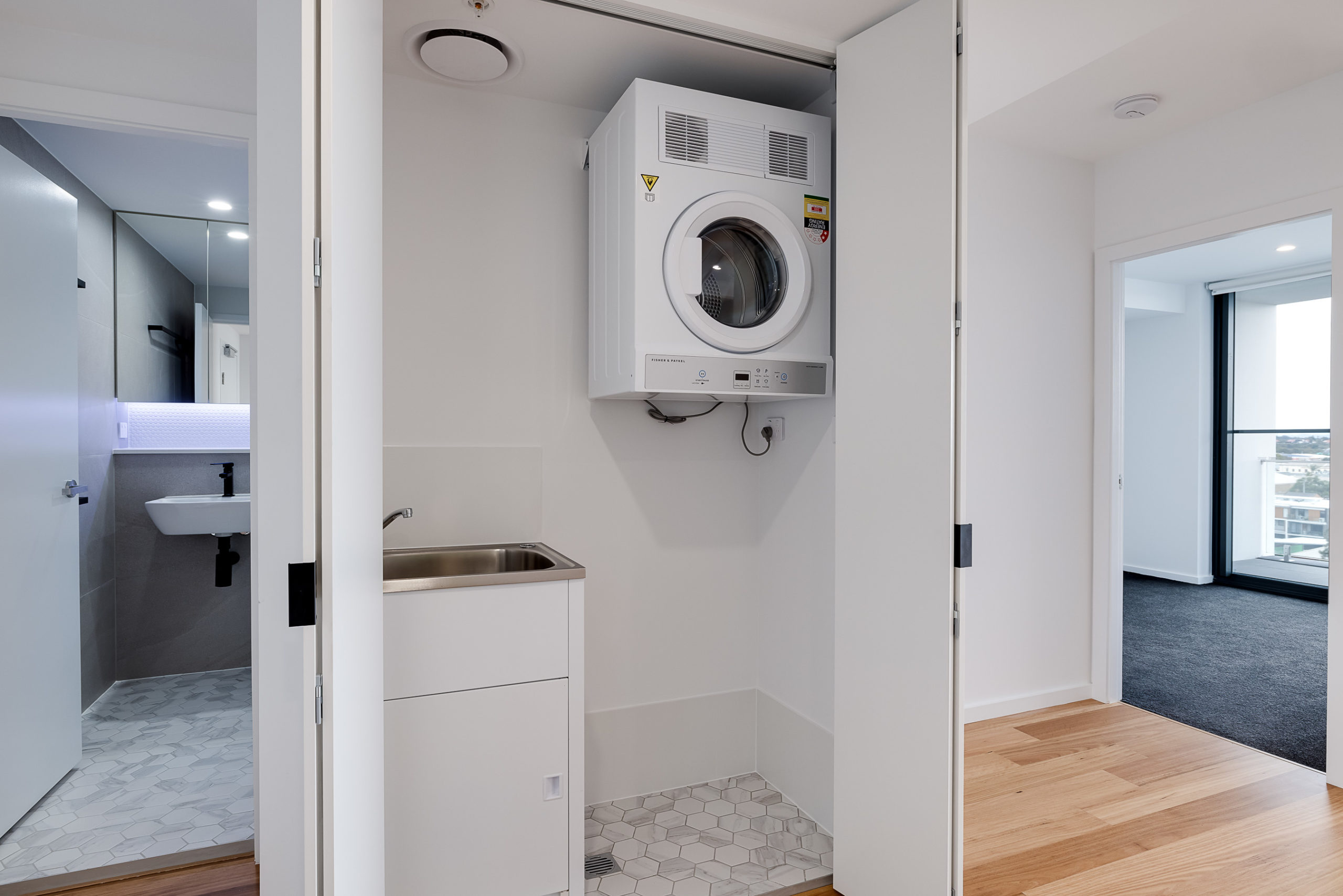 The apartment features ducted air conditioning in the main living area and the main bedroom + a European style laundry with wall hung dryer.