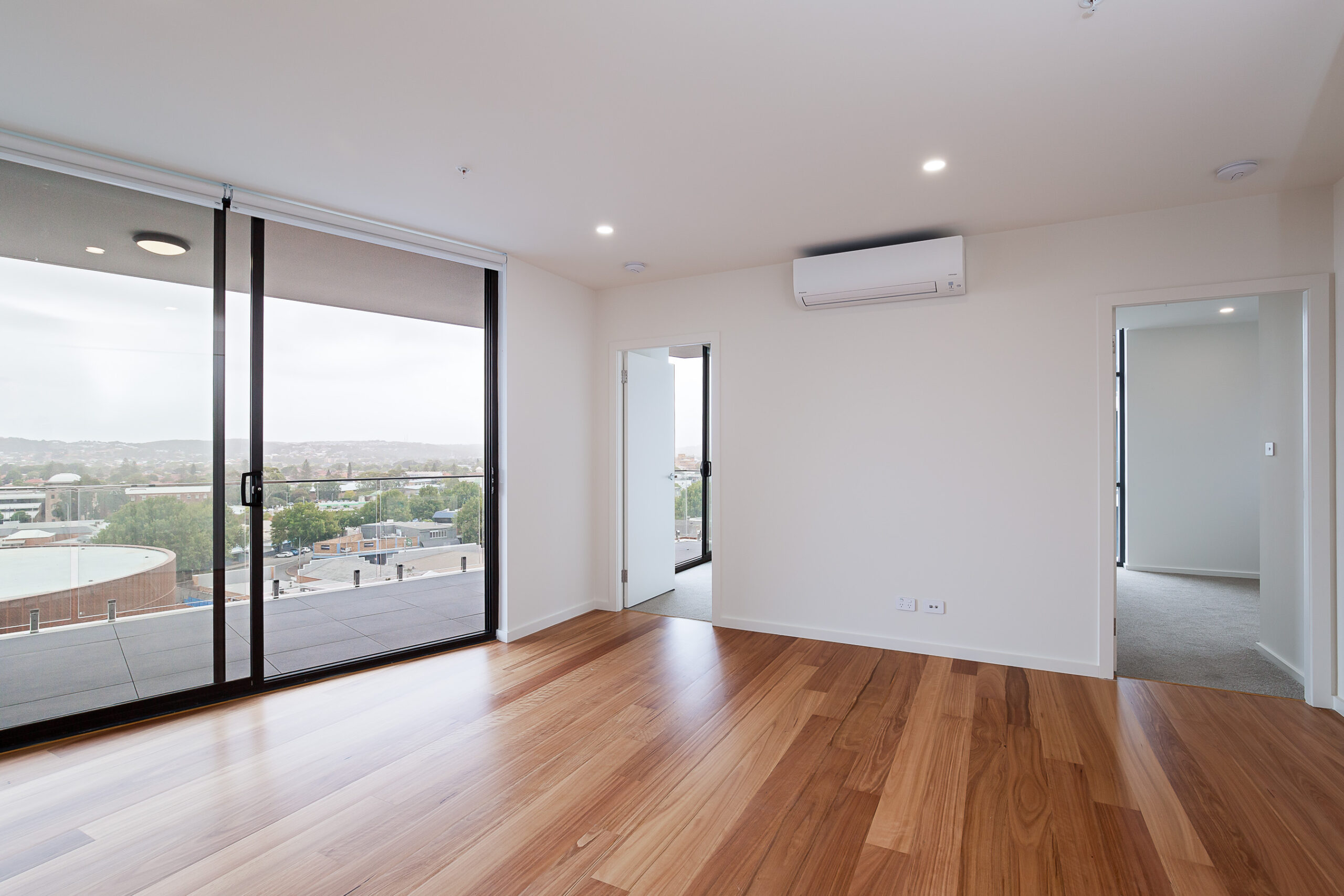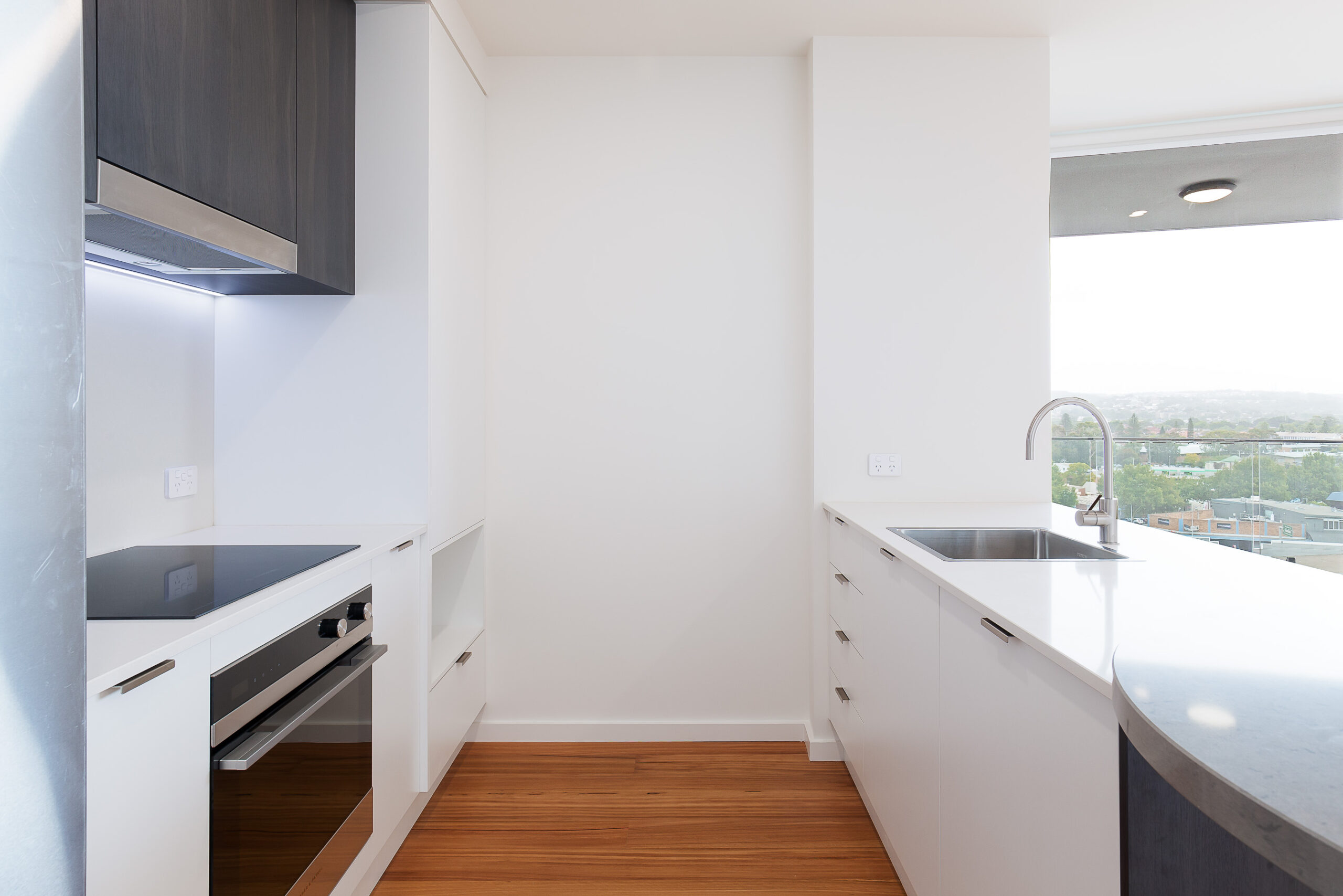 Upon entry is the stylish eat-in kitchen, with fridge and dishwasher included, as well as induction cooking. The open plan air conditioned sizeable lounge area has floorboards for that natural look, and a huge sliding door opening to the balcony.