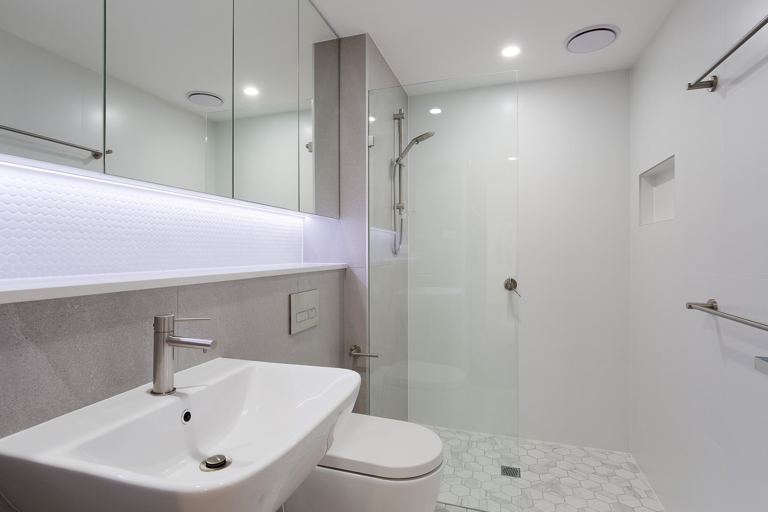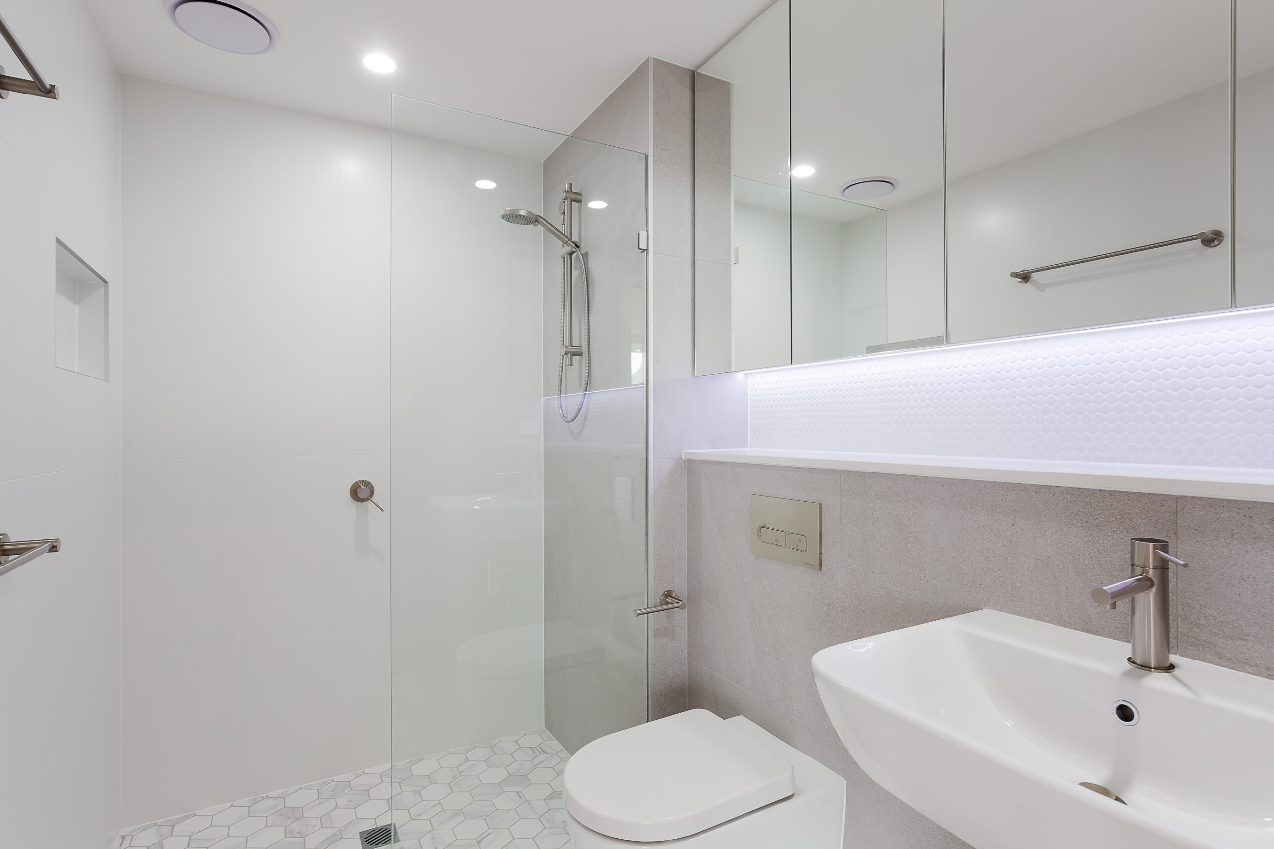 The main bedroom features plush carpet, a massive walk-through robe and a sleek ensuite bathroom. The second bedroom also features plush carpet, a large built-in robe, and a sliding door out to the balcony., as well as a second separate bathroom.