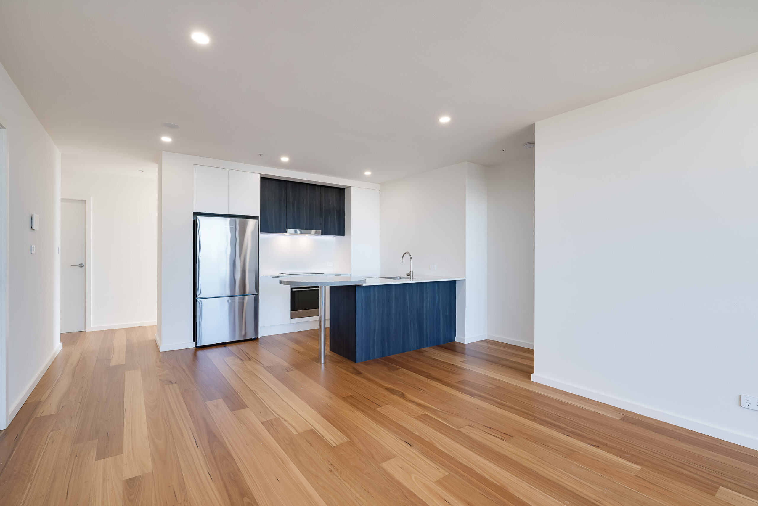 Upon entry is the stylish eat-in kitchen, with fridge and dishwasher included, as well as induction cooking. The open plan air conditioned lounge area has floorboards for that natural look, and a huge sliding door opening to the balcony.