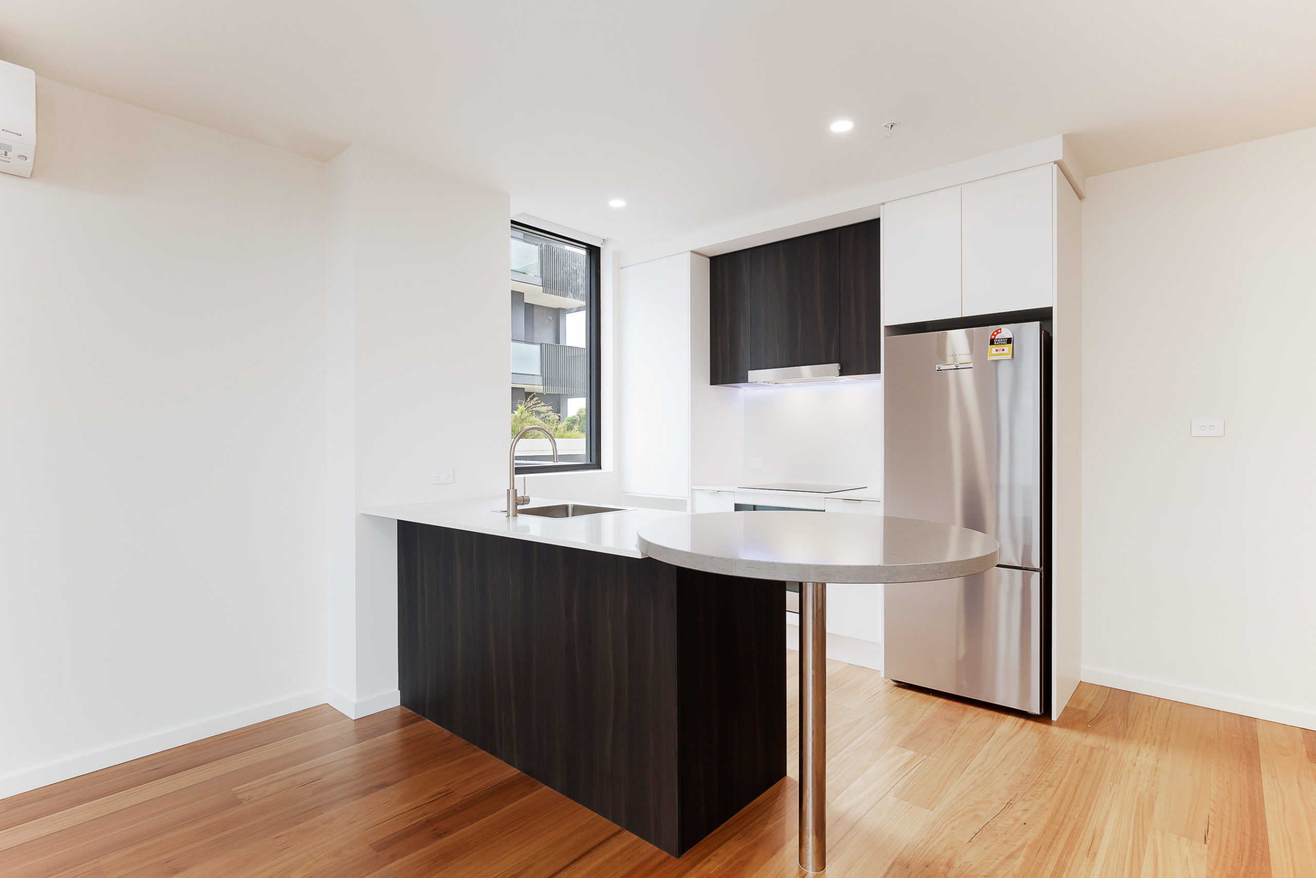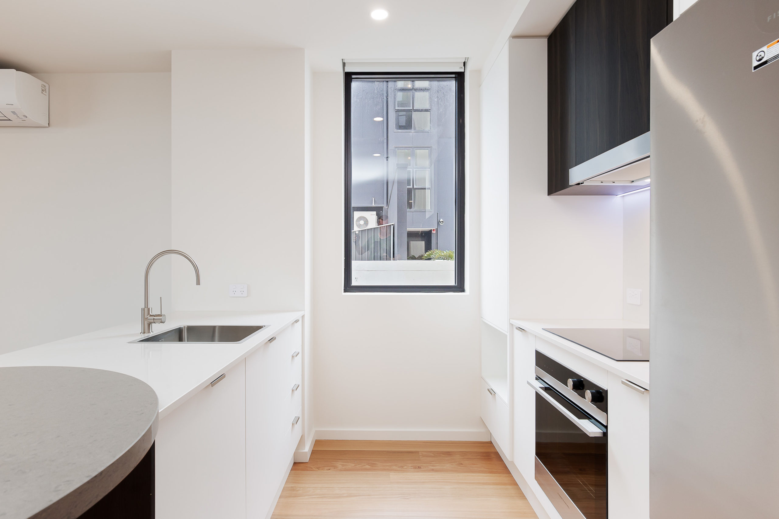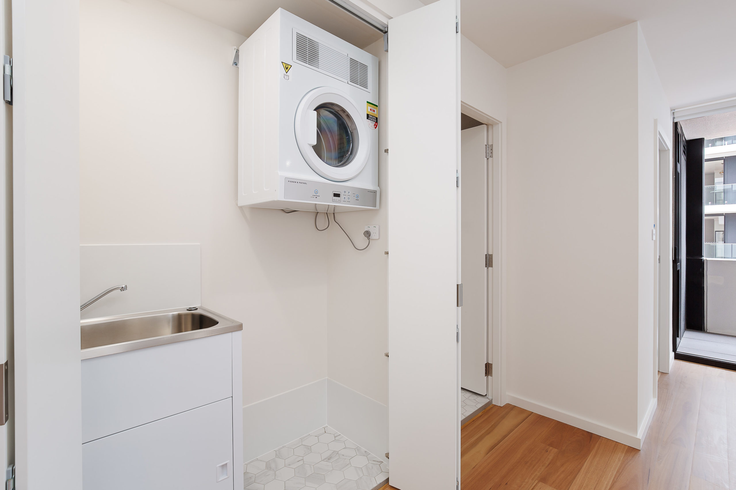 This level five apartment features a sizeable bedroom with built-in robe, a designer bathroom and a European style laundry with wall hung dryer.